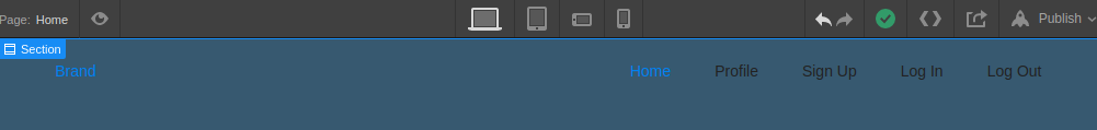 2. Create a navbar, with in the navbar create 5 navlinks (Home, Profile, Sing Up, Log In, Log Out). Make the navbar a symbol to be reused.